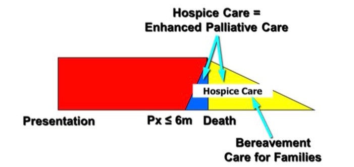A set of services focused upon relief of suffering and enhancement of quality of life. It is a funding/service delivery model for palliative care It is typically provided during The last phase of an advanced illness Six months Bereavement.